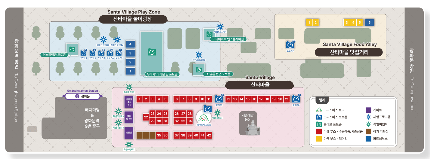 광화문 마켓에서는 여러 가지 프로그램과 행사가 진행됩니다. 매일 저녁에는 라이브 음악 공연이 열리며, 가족 단위 방문객들이 함께 즐길 수 있는 다양한 체험 프로그램도 마련되어 있습니다. 또한, 크리스마스 테마의 특별한 포토존이 마련되어 있어, SNS에 올릴 멋진 사진을 찍기에 좋은 장소입니다.