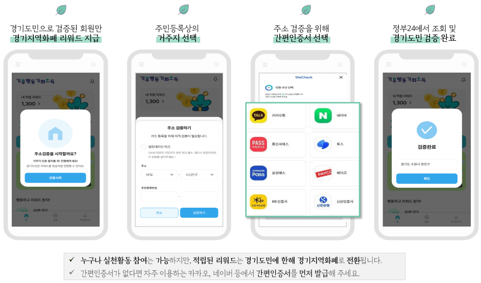 ▶ 경기도 내 주민등록 주소지를 두고 있는 만 7세 이상의 경기도민이면 리워드를 경기지역화폐로 받을 수 있습니다.