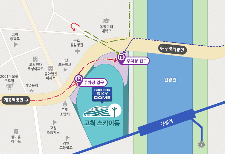 1,2호선 신도림역 | 1호선 구로역 | 1호선 개봉역 | 1호선 구일역 |