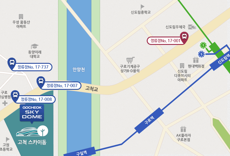 | 1,2호선 신도림역 | 1호선 구로역 | 1호선 개봉역 | 1호선 구일역 |