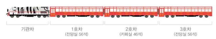 백두대간 협곡열차는 기관차와 객차 3량으로 구성되어 있습니다.