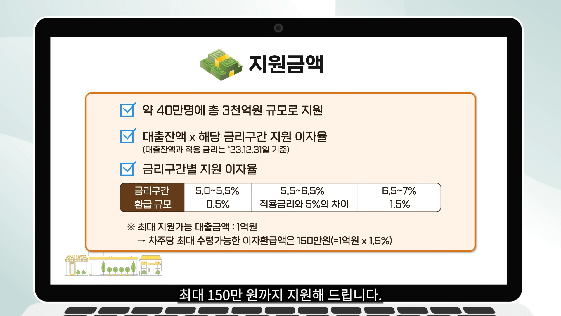 지원금액은 대출잔액 X 해당 대출금리구간 지원 이자율