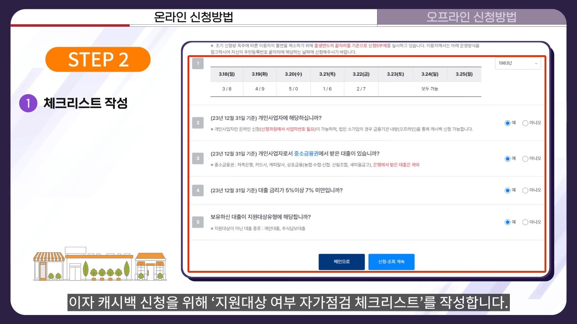소상공인이 중소금융권(농협, 새마을금고, 신협, 수협, 산린조합, 저축은행, 카드사, 캐피탈사)의 대출이 있으면서 5% 이상 7% 미만의 금리를 내고 있는 경우 이자 환급 대상이 됩니다.