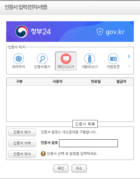 - 발급용도에 체크