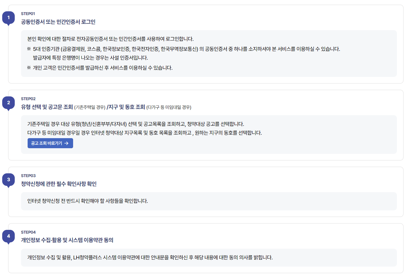 청년, 신혼부부, 신생아가구 청약신청 절차 공통