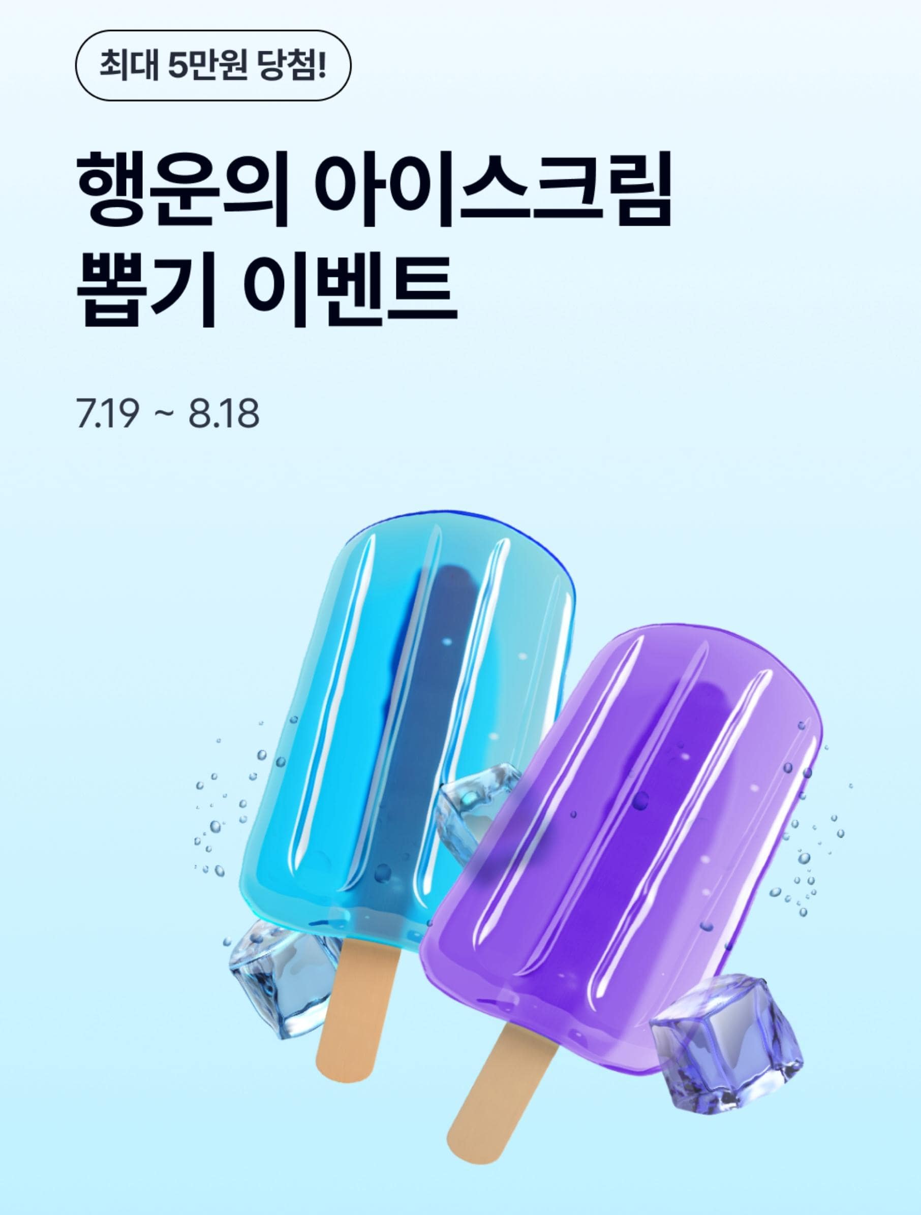 용돈봉투에 뒤를 이은 아이스크림 뽑기 최대 5만원 지급 이벤트가 바로 그것입니다.