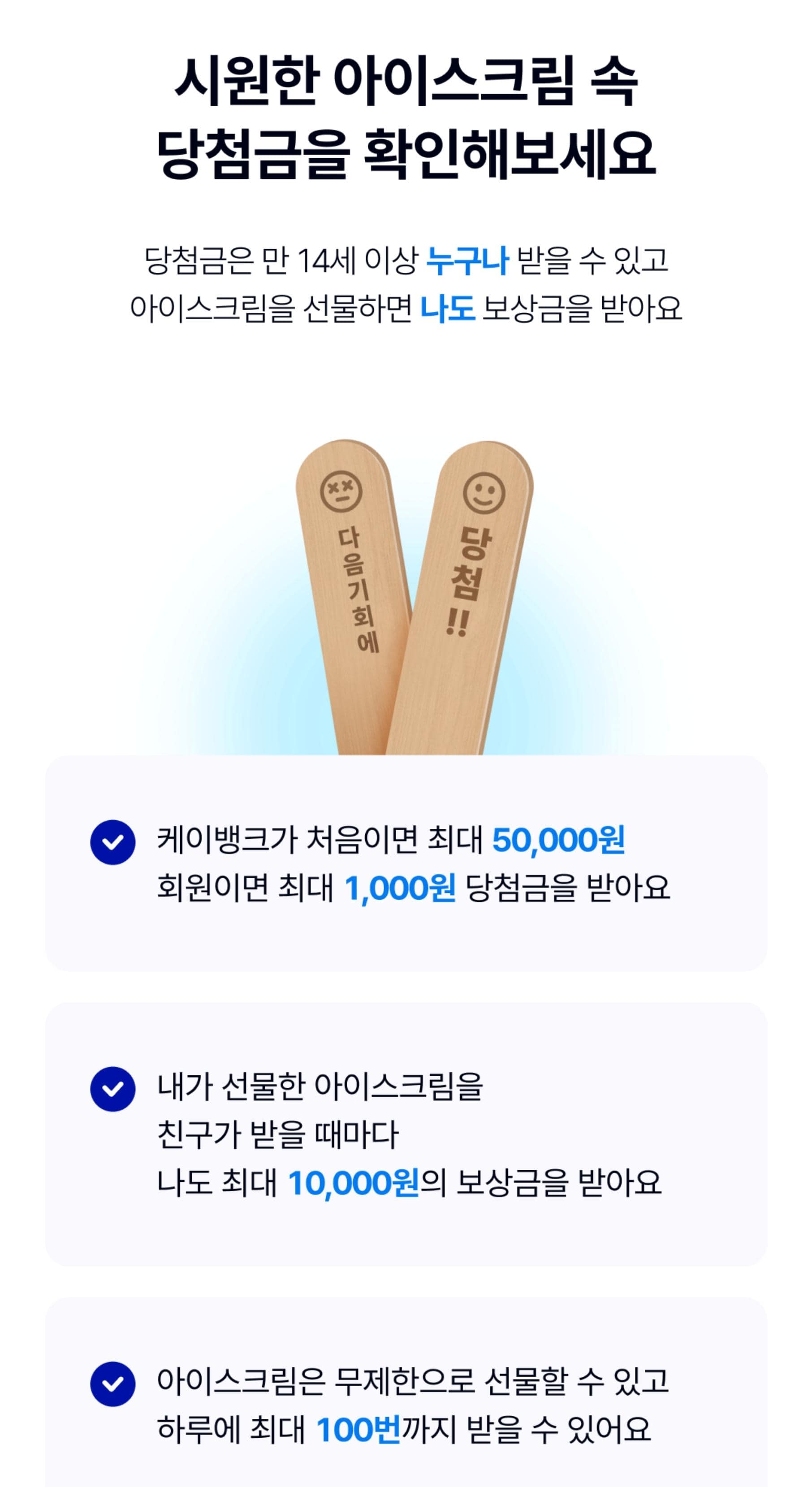 케이뱅크 아이스크림 이벤트로 마음 시원한 여름 나시길 바랍니다.