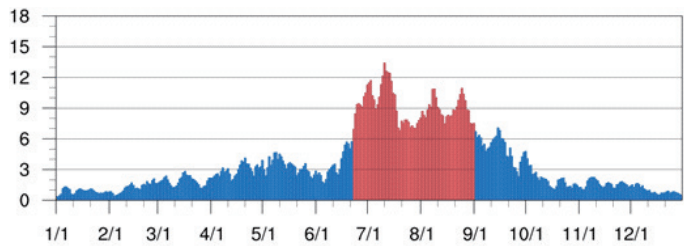 2024년 장마기간은 전체적으로 6월중순에 시작해 7월중순에 종료됩니다.