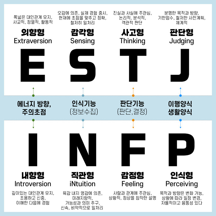 MBTI 성격 유형검사는 대중적으로 알려진 성격 유형검사 방식입니다.